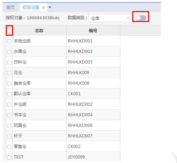 4、 例 2:某倉(cāng)管只負(fù)責(zé)深圳、北京、上海三地倉(cāng)庫(kù),不允許其看到其他倉(cāng)庫(kù)的數(shù)據(jù),則需“啟用”倉(cāng)庫(kù)的數(shù)據(jù)權(quán)限,并勾選上述倉(cāng)庫(kù),如圖所示。