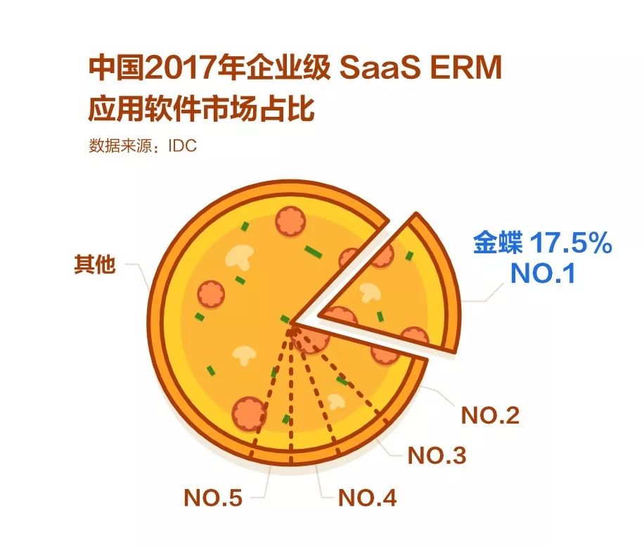 IDC另外一份報告《中國半年度企業(yè)級SaaS ERM應(yīng)用軟件市場跟蹤報告》(2017下半年)還顯示,2017年全年金蝶在SaaS ERM以17.5%的占有率排名第一,在SaaS財務(wù)云市場占有率更高達43.56%,超過第2到15名同行廠商的云收入總和。合計,金蝶在企業(yè)級SaaS、SaaS ERM和SaaS財務(wù)云領(lǐng)域共獲得三項第一。