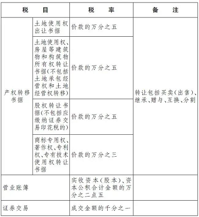 根據(jù)應(yīng)納稅憑證性質(zhì)的不同,印花稅分別采用比例稅率和定額稅率,具體稅目、稅額標準詳見《印花稅稅目、稅率(稅額標準)表》。此外,根據(jù)國務(wù)院的專門規(guī)定,股份制企業(yè)向社會公開發(fā)行的股票,因買賣、繼承、贈與所書立的股權(quán)轉(zhuǎn)讓書據(jù),應(yīng)當(dāng)按照書據(jù)書立的時候證券市場當(dāng)日實際成交價格計算的金額,由出讓方按照1‰的稅率繳納印花稅。