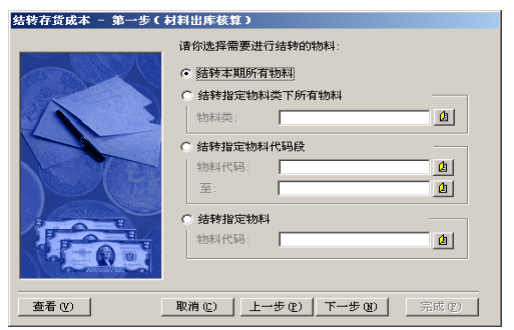 2.1. 進(jìn)入【存貨核算】→【出庫(kù)核算】→【材料出庫(kù)核算】,單擊“下一步”,選擇“結(jié)轉(zhuǎn)本期所有物料”。