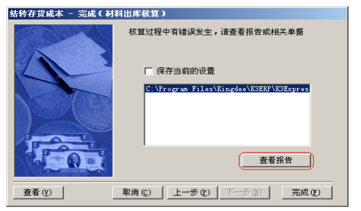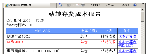 2.4. 核算完畢,我們可以通過(guò)‘查看報(bào)告’得到核算結(jié)果,其中藍(lán)色字體的是核算成功的,以紅色字體顯示的則是核算有問(wèn)題的物料,單擊‘成本計(jì)算表’或‘錯(cuò)誤日志’,可以幫助檢查問(wèn)題原因。