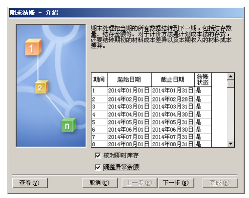 1、 單擊【存貨核算】→【期末處理】→【期末結(jié)賬】,在‘核對(duì)即時(shí)庫(kù)存’、‘調(diào)整異常余額’前打勾,單擊【下一步】,完成月末結(jié)賬操作。